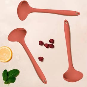 Este kit de conchas silicone é composto por três conchas na cor terracota. Cada concha possui um cabo longo e ergonômico para facilitar o manuseio. O silicone é seguro para uso em alimentos, resistente ao calor e fácil de limpar. Essas conchas de cozinha de silicone são ideais para servir sopa, caldo, feijão e outros alimentos líquidos. O conjunto oferece versatilidade e pode adicionar um toque de cor à sua cozinha.