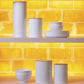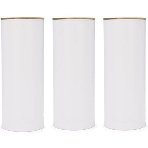 3 Latas Decorativas 2,5L Pasta Haus Porta Condimentos Branco Redondo Massa.