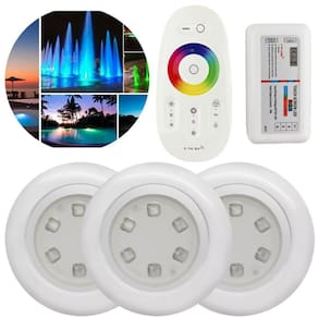 3 Luminárias Leds 12V De Piscina RGB 9W Com Controladora Módulo Central + Controle Touch Screen + Fonte De Energia As Luminárias com Luz Led RGB submersíveis, produto de fácil instalação, são ideais para iluminação decorativa em ambientes aquáticos, como: piscinas, chafarizes, aquários, cascatas, fontes de águas deixando seu ambiente mais belo, agradável e colorido. Especificações das Luminárias:- Materiais do produto: ABS- Cor do produto: Branco- Quantidade de Leds: 6 Leds- Cores da iluminação: RGB- Voltagem: DC-12v Volts - Potência da Luz: 9W- Classificação: IP68 a prova d'água- medidas da luminária: Diâmetro: 9,5cm x Profundidade: 3cm x Fiação: 93cm- Forma de fixação: Parafusos Não é de rosca Especificações do controle:- Materiais do produto: ABS- Tipo: Sem fio Touch Screen - Distância máxima do controle: 30 metros- Frequência do controle: 2,4ghz RF- Funciona com 2 pilhas AAA Não inclusas - Medidas do controle: 110mm x 53mm x 20mm- Com o controle RGB você pode controlar a cor, a intensidade e os modos da iluminação, criando ambientes surpreendentes e coloridos. Especificações do controlador Central Módulo :- Materiais do produto: ABS- Forma de controle: RGB 3 canais - Corrente máxima por canal: 6A- Quantidade de programação: 20 tipos- Controlador RGB 4 vias - Tensão de trabalho: 12V/24V - Medidas do controle: 85mm x 45mm x 23mm Instruções e recomendações de uso:- Procure um profissional especializado para que planeje e execute a instalação com segurança.- Forma de fixação: As luminárias deverão ser fixadas através de 2 Parafusos Inclusos no produto - ATENÇÃO: A luminária não deverá ser ligada diretamente na energia elétrica 110/220v sem uma fonte de 12V instalada para não danificar o produto. - Peso total do produto: Aproximadamente 615 gramas o Kit Itens inclusos:- 3 Luminárias RGB Submersíveis- 3 Kits de instalações contendo suportes, parafusos e buchas- 1 Central Módulo RGB Controlador - 1 Controle Remoto RF sem fio Touch Screen- 1 Fonte de Alimentação de 12V com 3A