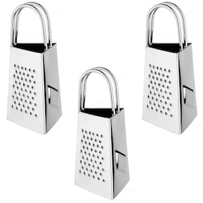 Conteúdo da embalagem: 3 Mini ralador de 3 faces em aço inox.