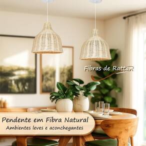 - Cor: Fio/canopla: Branco Difusor: Ratan Natural