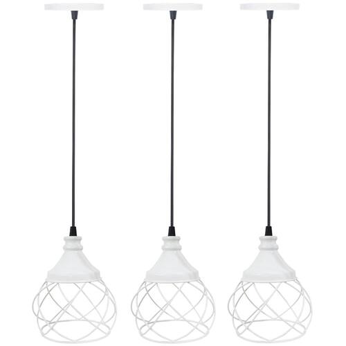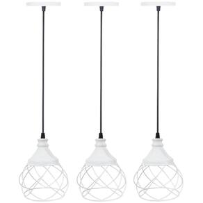 3 Pendentes Aramado E s f e r a B a l o n ê Lustre Luminária Teto Regulável Sala Cozinha Industrial Agp - Cor: Branco