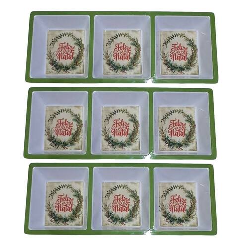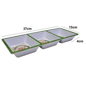Charmosa e prática, esta petisqueira com 3 divisórias é perfeita para servir petiscos com estilo durante as festas de fim de ano. Feita em melamina resistente, possui estampas natalinas que trazem um toque festivo à sua mesa. Ideal para queijos, frutas secas, castanhas e outras delícias da temporada!Disponível em três estampas exclusivas, cada uma com ilustrações natalinas encantadoras:Cenário de vila natalina com árvore de Natal central e casinhas decoradas sob a neve.Prato "Feliz Natal” com guirlanda de folhagens e com borda em verde ou vermelho vibrante.Quebra-nozes tradicional com borda em padrão xadrez, vermelho e dourado, trazendo um clássico natalino à mesa.Dimensões: 37cm x 15cm x 4cmMaterial: Melamina (não vai ao micro-ondas)Fácil de limpar e altamente durávelIdeal para festas, jantares e confraternizações natalinasLeve mais alegria e beleza à sua mesa com essa peça indispensável para o Natal!Itens Inclusos:3 Petisqueiras em melamina Marca: Não Informado