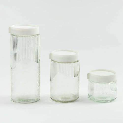 LAVITTRA KIT 3 POTES C/ TAMPA TRANSPARENTE O Kit de Potes Lavittra e ideal para organizar e armazenar alimentos com praticidade e elegancia. Produzidos em vidro resistente e com tampas plasticas na cor branca, os potes possuem design moderno com textura que valoriza a peca e combina com qualquer cozinha. Perfeitos para guardar mantimentos como acucar, cafe, biscoitos, graos, temperos e diversos outros alimentos, mantendo tudo mais organizado no seu dia a dia. Alem de funcionais, sao otimos para compor a decoracao da cozinha ou despensa.