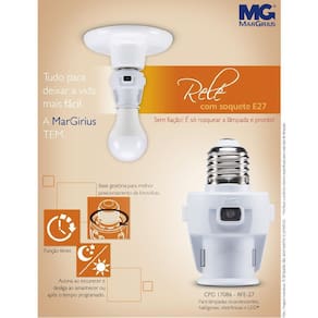 O relé fotoeletrônico com soquete E27 MarGirius é fácil de instalar: basta rosquear o sensor entre a lâmpada e o soquete ou luminária. Possui também a função random: ao escurecer, a lâmpada será ligada e desligada sucessivas vezes, em intervalos de tempo aleatórios até a luz do ambiente aumentar dia , simulando a presença de pessoas.