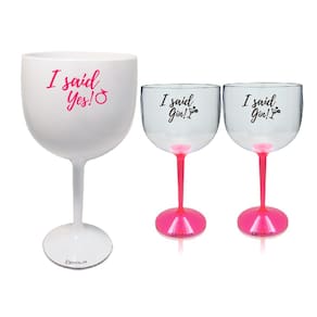 O Kit exclusivo com 3 Taças Gin da KrystalON Copos Personalizada Despedida de Solteira de 550ml em Acrílico Poliestireno Super Resistente foi especialmente desenvolvido para o consumo de Gin, Vinho e outras bebidas. Perfeito para você comemorar sua despedida em grande estilo. Especificações: Capacidade: 550 ml Dimensões: Altura: 20 cm Diâmetro: 12 cm Quantidade: 3 Peças Cor: Branca e Base Rosa Material: Acrílico Poliestireno