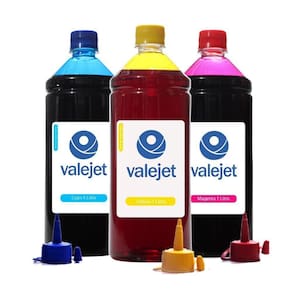 3 Tintas Coloridas 1l L375 L395 L3110 L3150 KIT TINTA CORANTE VALEJET Qualidade e alto desempenho são características da nossa Tinta Corante VALEJET Unindo esses dois fatores, você poderá imprimir imagens e documentos sempre com alta resolução e baixo custo. Ideal para impressoras jato de tinta. Nossas tintas evitam o entupimento da cabeça de impressão e podem ser utilizadas em cartuchos recarregáveis e no sistema contínuo de impressão (Bulk-Ink).