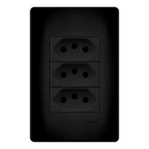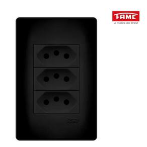3 Tomadas Preta 2P+T 10A/250V C/P Shp - Fame