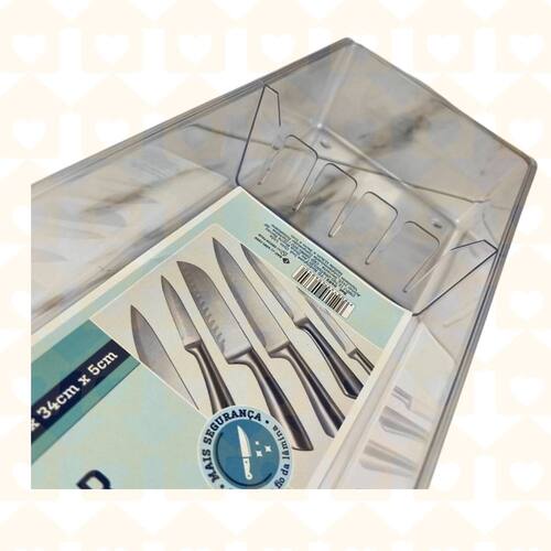 CONTEÚDO DA EMBALAGEM: 03 Organizadores com 5 divisórias segundo as descrições acima. NÃO VEM ACOMPANHADO DE FACAS, IMAGENS MERAMENTE ILUSTRATIVAS. Ean: 7908149406840