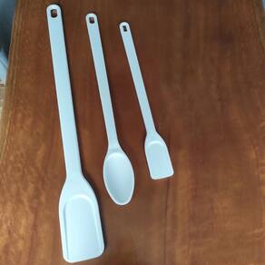 Conteúdo: 1 espátulas estreita, 1 espátula larga e 1 colher grande industrial;