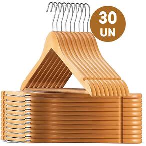 CONTÉM: - 01 Kit com 30 Cabides de Madeira com verniz