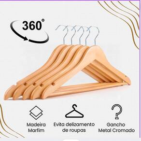 • Suporte firme para diferentes tipos de roupas: Por ser de madeira, oferece uma estrutura robusta que mantém as roupas na posição correta, evitando que escorreguem ou fiquem amassadas.