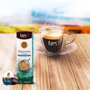 3 caixas com 10 cápsulas de café. Peso líquido total: 150g.