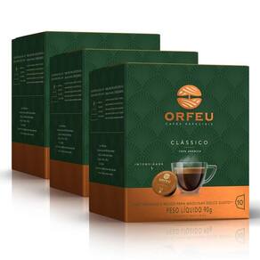 3 caixas com 10 cápsulas orfeu clássico para dolce gusto Peso líquido total: 225g 7,5g por cápsula