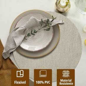 Vantagens: - fácil de limpar; - impermeável; - suporta calor; - flexível e resistente; - fácil de guardar; - protege mesa e a toalha; - design moderno e elegante. - excelente custo benefício Limpeza fácil: - dia a dia: use pano úmido, com álcool ou veja e etc; - se precisar lavar: use esponja e detergente neutro; - secagem rápida O jogo americano proporciona um excelente efeito visual à mesa e combina com diversos tipos de louças e ambientes. Feito com material de alta qualidade, ele é fácil de limpar e muito prático para o dia a dia. Contém: 30 peça s . Cor: areia Dimensões: largura: 38cm comprimento: 38cm Formato: redondo Material: 100% pvc Somos fabricantes, por isso o melhor preço para essa matéria prima. Um produto idealiza comercio de utilidades Marca: Não Informado Ean: 7908975919019