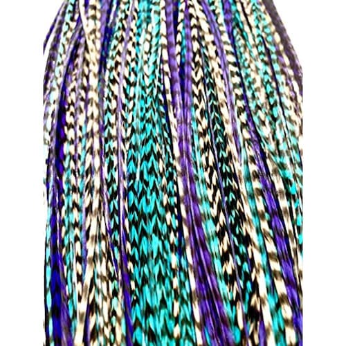 Essas penas podem ser lavadas, estilizadas, secas ao ar, enroladas e até mesmo passadas com o cabelo (suportando o calor até 400 °). Com os devidos cuidados, eles podem durar anos e são verdadeiras penas genuínas de galo. Este pacote incluirá 30 penas individuais de cor roxa, branca e turquesa Grizzly Color, 10 micro contas de link para anexação, rosqueador de cabelo e instruções de instalação.