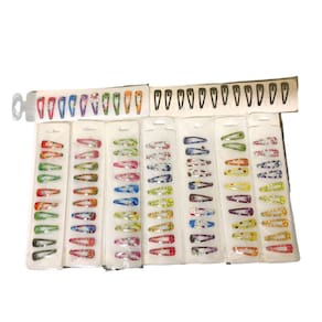 Contém: 30 presilhas de cabelo tic tac pequeno 3cm infantil uso adulto e infantil, podendo ainda ser decorada com adereços para uso próprio ou para revenda. Tamanho: 3cm material: metal cor: coloridos obs: será enviada estampas aleatórias de acordo com a disponibilidade do estoque,