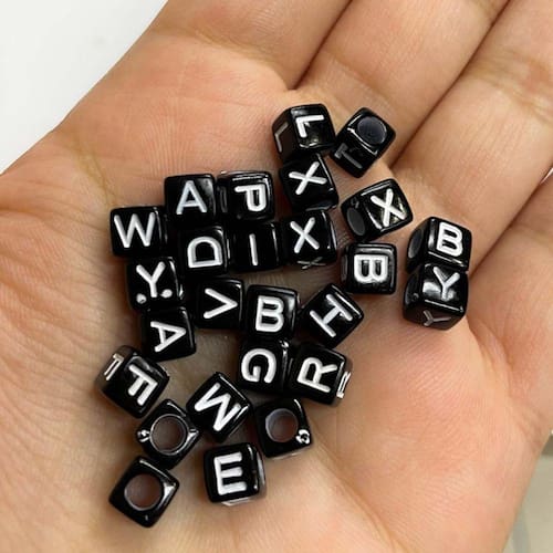 Entremeio Quadrado Preto 06mm Letras Brancas Aprox.300 Miçangas Para Colar Pulseiras. Pacote com 50 gramas aproximadamente 300 letras quadradas.A quantidade de letras, Vogais e Consoantes podem variar de acordo com o lote.Material: Plástico. Tamanho: 06mmConfeccione Brincos, Pulseiras, Colares, Chaveiros, Decore Materiais Escolares, Lembrancinhas, Acessórios para Pets, artesanato em geral.Estimula a criatividade, coordenação motora, Concentração, e o empreendedorismo.Diversão garantida! Crianças e Adultos se divertem criando peças incríveis para presentear ou vender para os amiguinhos e parentes. Marca: Adb