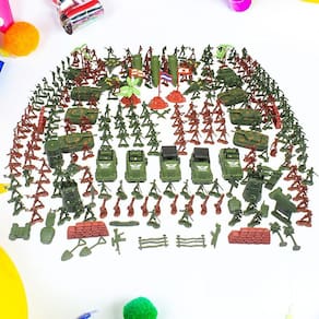 DescriçãoVocê está procurando um brinquedo criativo e engraçado para seus filhos? Este item será a sua melhor escolha. Este produto é um conjunto de brinquedos de mesa de areia militar de plástico para crianças. Com eles, as crianças podem brincar de faz de conta. Eles podem comandar os seus próprios soldados no campo de batalha imaginativo. Características- Cor: Como mostrado.- Material: Plástico.- Tamanho do pacote: Aprox. 2,5 X 1 X 3,5cm.- Feito de material plástico, seguro, não fácil de danificar.- As crianças podem comandar o seu próprio de soldados no campo de batalha imaginativo.- Propício para exercitar a imaginação da criança e compreensão do conhecimento militar.- Com eles, as crianças podem jogar jogo de faz de conta.- Adequado para distribuição em festas infantis. As crianças vão gostar.