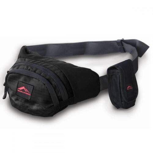 Estojo com acolchoamento reforçado, com três compartimentos. Um bolso frontal menor, para pequenos objetos, como chaves, um compartimento principal, com acesso na frente, e um de acesso pela parte de trás, mais protegido e mais discreto para documentos pessoais e carteira. No cinturão, vem acompanhado de um prático estojo para celular ou MP3.