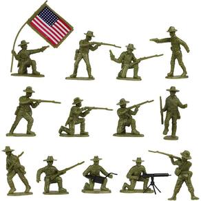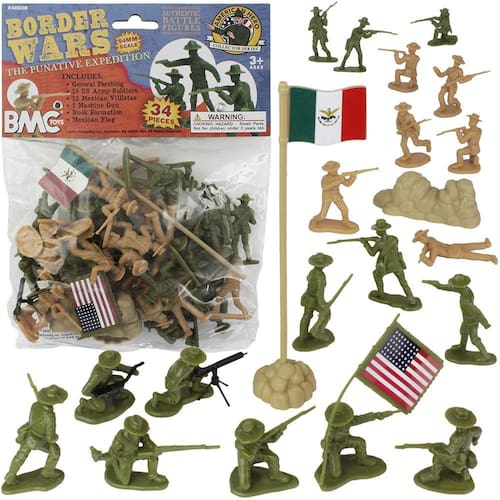 . BMC Border Wars 34 Peça SetColors: OD Green Soldiers e Medium Tan VillistaSize: Figuras suportam 2,25 polegadas de altura Escala: Aproximadamente 1:32 (54mm)Embalagem: Polybag com cartão de cabeçalho