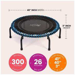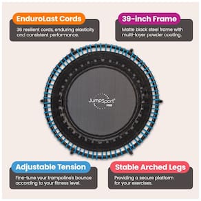 O trampolim confiável de fitness tem um treino gratificante e divertido em casa, com este trampolim interno confiável por especialistas por sua capacidade de oferecer exercícios de alta intensidade com especificações mínimas de segurança de impacto mini meias de trampolim 41 x 40 x 3 l x w x h com um peso de 11,79 Quilos e uma capacidade máxima de 136,05 quilos para uma peça de equipamento de exercício leve e portátil, assume o controle do seu treino com a opção de Bounce médio ou firme, permitindo a personalização do trampolim do exercício para se adequar às suas preferências e objetivos de condicionamento físico, construção durável, com uma estrutura robusta de aço preto fosco de 39 polegadas com revestimento em pó multicamada, garantindo durabilidade e estabilidade para usuários do treino trampolim faculdade de uso com 36 cordões resilientes , este rebote trampolim oferece elasticidade duradoura e desempenho consistente, garantindo uma sessão de exercícios confiável e agradável que você possa personalizar
