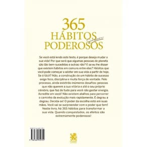 "Se você está lendo este texto, é porque está determinado a transformar a sua vida! Já se questionou por que algumas pessoas alcançam o sucesso enquanto outras não? E se eu revelar que há hábitos comuns entre essas pessoas bem-sucedidas? Hábitos que você pode começar a incorporar em sua vida a partir de hoje. Será fácil? Não, a construção de hábitos bem-sucedidos exige foco, disciplina e uma grande dose de determinação. Ao longo do processo, você enfrentará diversos desafios, desde pessoas que não torcem pelo seu sucesso até a resistência do seu próprio cérebro, que tentará persuadi-lo a economizar energia. Acreditar em si mesmo é crucial! Não existem atalhos para acelerar o percurso da evolução; é um progresso de degrau em degrau. Faça a decisão! O poder de escolha está em suas mãos. Você ficará surpreso com a incrível capacidade que possui! Neste livro, apresento 365 hábitos para transformar a sua vida. Quando incorporados, esses hábitos têm efeitos extraordinariamente poderosos!"