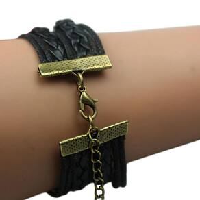 Condição: 100% Brand New Material: Couro & Liga & Wax Cords Cor: Como a imagem mostra Quantidade: 1 PC Comprimento: Cerca de 17cm Mais novo elegante Pulseira de corda de malha Presente agradável para seu amigo e você mesmo