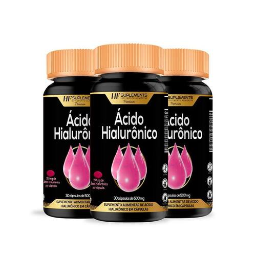 Através deste anúncio, você está adquirindo 3 três potes de ácido hialurônico premium hf suplements com 30 cápsulas cada. Ean: 7902408125107