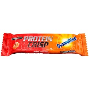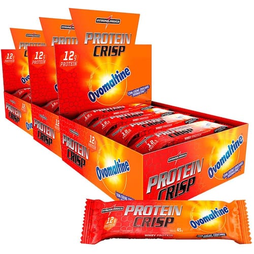 Ingredientes: Blend proteico (proteína concentrada de leite obtida de leite bovino, colágeno hidrolisado e proteína de soro do leite isolada), Ovomaltine® Creme Crocante, cobertura sabor de chocolate ao leite, Ovomaltine® Flocos Crocantes, óleo de palma, crisp de proteína de soro do leite sabor de chocolate, cacau em pó solúvel, frutooligossacarídeos (FOS), extrato de malte, mix de vitaminas e minerais (ácido ascórbico, nicotinamida, acetato de DL-alfatocoferila, D-pantotenato de cálcio, sulfato de manganês, cloridrato de piridoxina, riboflavina, tiamina mononitrato, palmitato de retinila, sulfato cúprico, ácido N-pteroil-L-glutâmico, picolinato de cromo, D-biotina, colecalciferol e cianocobalamina), água, cloreto de sódio, edulcorante xarope de maltitol, umectante glicerol, aromatizantes, emulsificante lecitina e conservante sorbato de potássio.