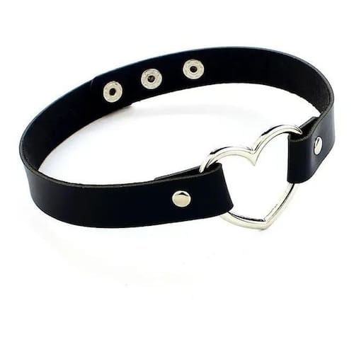 3X Gargantilha De Couro Argola De Coração Choker Preta Gótic