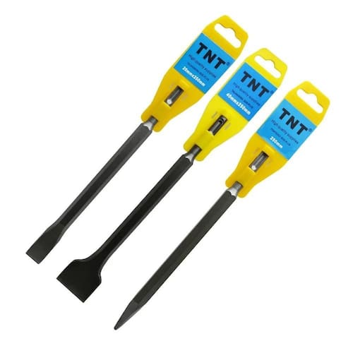 3X Kit 3 Pçs Talhadeiras E Ponteiro Sds Plus 250Mm P/Martele