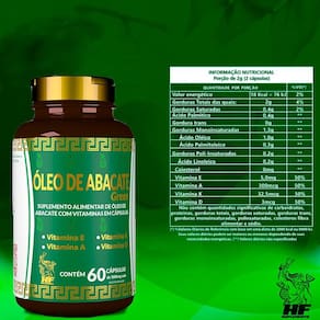 Suplemento alimentar de óleo de abacate com vitaminas em cápsulas
