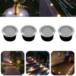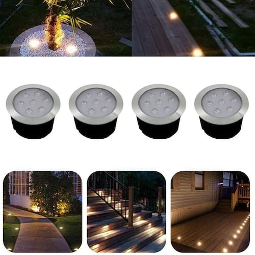 4 Luminárias Balizadores Spot Led SMD Em PVC De 7W Luz Branco Quente De Embutir Em Piso Chão Solo Gramado Jardim Escada