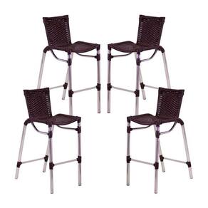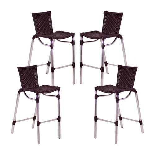 4 Banquetas Em Alumínio Fortaleza Alta Com Encosto Para Cozinha Edícula E Balcão Tabaco - Marrom