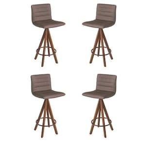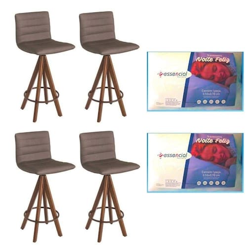 DESCRIÇÃO: A Banqueta Giratória Gourmet-Camurça Marrom é feita em madeira eucalipto,proporcionando um suporte de peso de até 150 Kgs. O Assento é revestido com espuma D-26 e tecido Camurça(Linha Alta),além de possuir sistema giratório que proporciona ao produto funcionalidade e charme. A Banqueta Giratória Gourmet,além de bonita e resistente vai trazer glamour para sua casa e seu ambiente. Medidas: Altura-101mm Largura-440mm Profundidade-470mm Altura do assento até o chão-725mm Obs: Na compra das 4 Banquetas Giratórias gourmet você leva de 2 travesseiros(Espuma da Nasa) Visco Elastico.