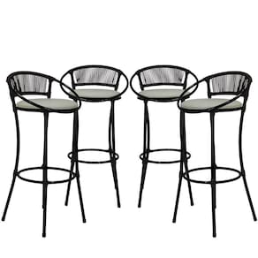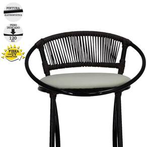 4 Banquetas Em Fio De Fibra Artesanal Para Bar, Bancada, Balcão - Havaí - Branco Gelo Tabaco