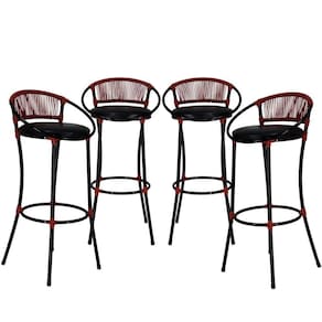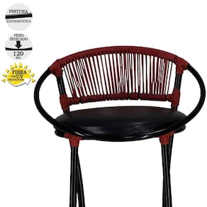 4 Banquetas Em Fio De Fibra Artesanal Para Bar, Bancada, Lanchonete - Havaí - Preto Vermelho