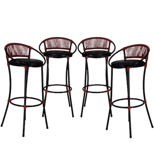 4 Banquetas Havaí Em Fio De Fibra Artesanal Para Bar, Balcão, Lanchonete - Preto Vermelho