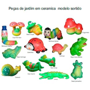 Os bichos decorativos em cerâmica são lindos e charmosos, dão um toque especial em qualquer casa, jardins, quintais, área da varandas e/ou piscinas. Quer deixar o seu jardim com uma cara de conto de fadas, mas não quer se preocupar com a manutenção, que tal estes lindos enfeites decorativos Feito em cerâmica da melhor qualidade, são pintados artesanalmente com pintura reforçada para suportar sol e chuva com durabilidade. Deixe sua casa e jardim com um clima agradável, alegre e descontraído, sendo também uma ótima opção de presente. Dimensões: Caracol: altura: 13 cm x largura: 12,5 cm x comprimento: 19 cm. Cogumelo duplo: altura: 12 cm x largura: 10 cm. Cogumelo com sapo: altura: 15 cm x largura: 11 cm x comprimento: 19 cm. Garça solitária: altura: 35 cm x largura: 8 cm x comprimento: 8 cm. Jacaré: altura: 9 cm x largura: 12 cm. Joaninha: altura: 5 cm x largura: 6 cm x comprimento: 9 cm. Lagarta / minhoca fêmea: altura: 10 cm x largura: 15 cm x comprimento: 15 cm. Minhoca macho com chapéu: altura: 18 cm x largura: 10 cm x comprimento: 10 cm. Sapa de biquíni : altura: 19cm x largura: 13 cm x comprimento: 14 cm. Sapo de sunga : altura: 19cm x largura: 13 cm x comprimento: 14 cm. Sapo coach coach - boca aberta: altura: 12 cm x largura: 15 cm x comprimento: 20 cm. Sapo pensador: altura: 19 cm x largura: 13 cm x comprimento: 14 cm. Sapo preguiça: altura: 12 cm x largura: 13 cm x comprimento: 21 cm. Sapo verruga : altura: 12 cm x largura: 15 cm x comprimento: 20 cm. Tartaruga: altura: 12 cm x largura: 4 cm x comprimento: 12 cm. Características do produto: - cerâmica ecológica de alta qualidade com pintura artesanal que suporta sol/chuva em áreas internas e externas. - produzido por artesões profissionais seguindo um padrão de qualidade que atenda o gosto dos nossos clientes Cuidados: - recomendamos o uso de pano levemente umedecido para sua limpeza. Garantia do produto: - o produto é muito bem acomodado dentro da caixa, e super embalado para evitar quebras, ainda assim possuímos um sistema de garantia e troca. Imagens meramente ilustrativas - produto artesanal, podendo variar de cor e/ou tonalidade Marca: Retrofenna Decor Ean: 7894107288248
