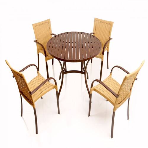 4 Cadeiras Ascoli e Mesa Ripada em Alumínio para Cozinha, Jardim, Piscina, Área, Churrasqueira - Sépia