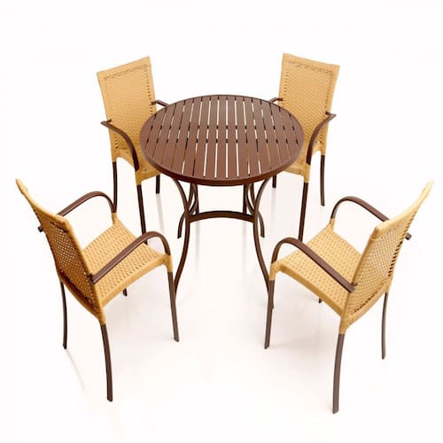 4 Cadeiras Ascoli e Mesa Ripada em Alumínio para Cozinha, Jardim, Piscina, Área, Churrasqueira - Marrom Chocolate