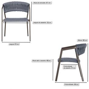 4 Cadeiras Atenas Tricô Náutico e Alumínio com Proteção UV para Varanda, Cozinha, Área, Jardim - Pintura Marrom - Prata