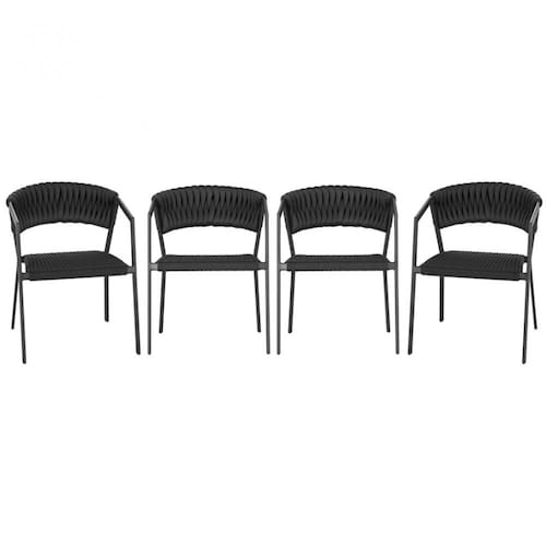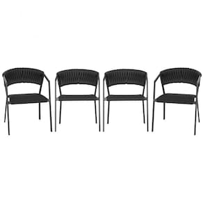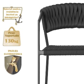 4 Cadeiras Atenas Tricô Náutico e Alumínio com Proteção UV para Varanda, Cozinha, Área, Jardim - Pintura Preto - Preto
