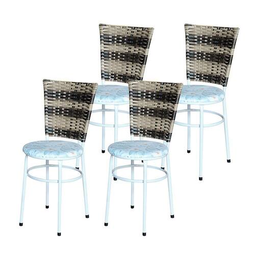 4 Cadeiras Brancas Para Mesa Hawai Cappuccino Premium Assento Floral Cor:floral Gelo