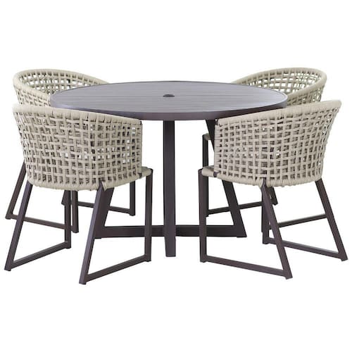 4 Cadeiras Corda Náutica Bali e Mesa Tampo Ripado em Alumínio Luxo Área, Jardim, Piscina - Trama - Marrom