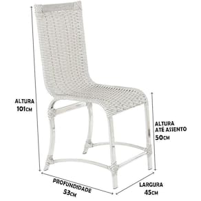 Cadeira: 50cm ALT até assento x 101cm altura total x 45cm LARG x 45cm PROF