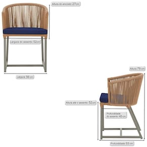 Antes de comprar o seu produto verifique as medidas, o onde pretende instalar e se necessario contratar o servico de um qualificado. Produto conhecido como: Cadeira Noronha, Cadeira de aluminio, Corda nautica, Estofado impermeavel, Moveis de exterior, Cadeira resistente a agua, Design moderno em Cadeira, Cadeira para area externa, Cadeira de jardim, Moveis para varanda, Cadeira duravel, Cadeira de alta qualidade, Conforto em Cadeira, Cadeira elegante.
