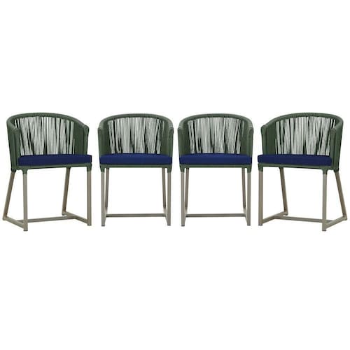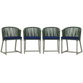 4 Cadeiras De Jantar Noronha Fendi Corda Náutica E10 Trama Verde