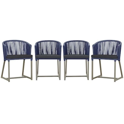4 Cadeiras De Jantar Noronha Fendi Corda Náutica E11 Trama Azul